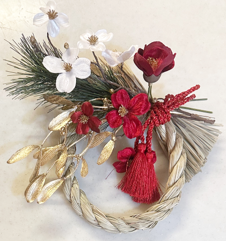 お正月仕様に飾り付けを変えようかと思ったのですが、それは日曜日のお仕事お休みの日にゆっくりやろうと…クリスマスリースが飾ってあった場所にしめ縄だけ飾りました
